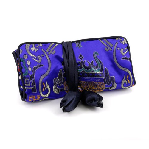 Jojo's Silk Jewelry Rolls let you travel in style! Shimmering jewelry travel rolls feature an embroidered oriental brocade print and long wrap-round ties. Ties wrap around the rolls to keep them closed, but can also be used to hang the open roll up for easy access to contents. Interior includes one large open pocket, three smaller zippered pockets, and one cloth tube for holding rings. Available in multiple hues; find the one that matches your favorite purse or luggage! Each jewelry roll is unique, and the exact pattern/hues may differ slightly from what is pictured. href=""helpdesk.html#outletitems"">CLICK HERE see the Outlet Item section of our Help Desk for more information.Material: Silk/rayon brocade Measures: Approx. 8.5 inches long x 6 inches wide when open; approx. 3 inches long x 6 inches wide x 1 inch deep when closed.